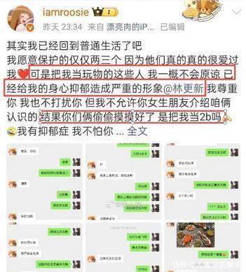 没想到才一年过去,林更新又得罪了司晓迪。1月2日,司晓迪发了和林更新的聊天截图,怒怼他在恋爱期间出轨,把她当成玩物。从聊天内容来看,二人在2022年和2023年关系挺融洽的,但后来林更新偷偷和她的闺蜜走得挺近,结果她气得不行。