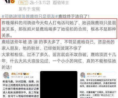 司晓迪虽然没和鹿晗睡过,但两人关系一直不错。曾经两人关系十分亲密,甚至就算鹿晗喝醉,也毫不戒备司晓迪,结果她躺在他的床上还拍了一张合照,之后就传出了“鹿晗疑似在恋爱中劈腿”的传闻。不过1月3日中午,司晓迪为鹿晗澄清了,说他们只是普通朋友,她也是趁对方喝醉的时候偷偷拍的。